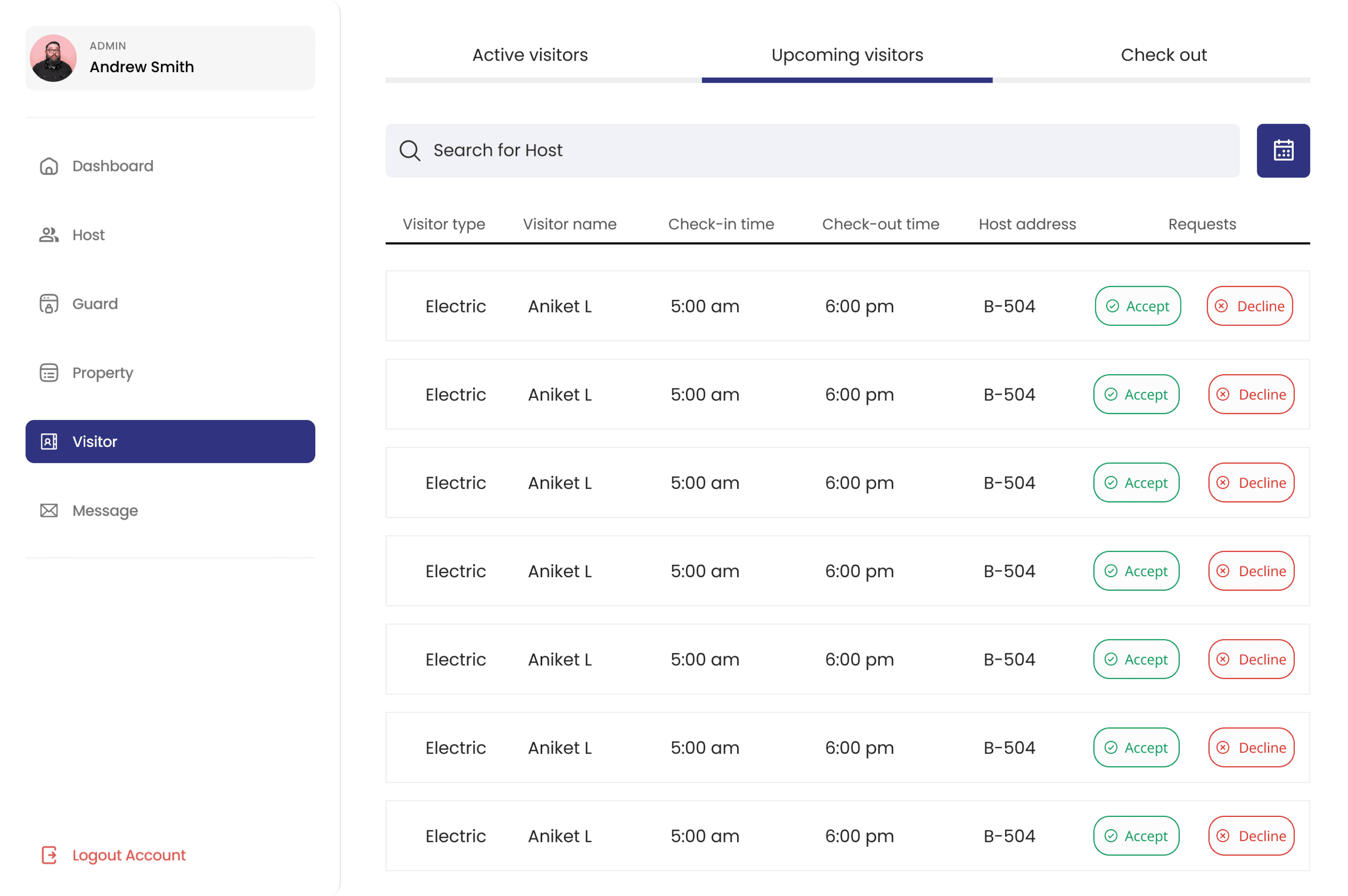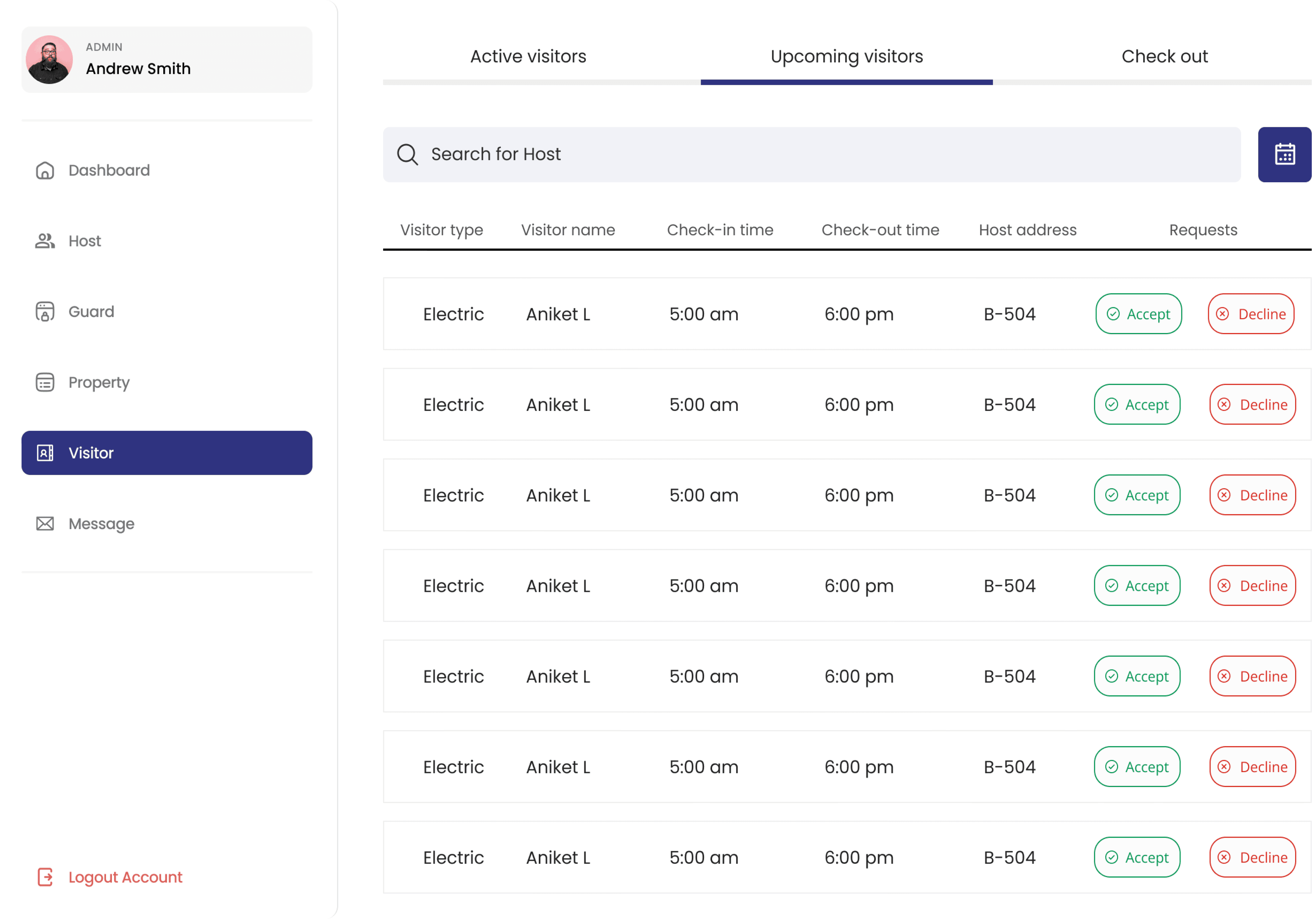 Centralised Database: Create a centralised digital database for real-time access to visitor information, allowing admins and hosts to quickly retrieve and manage data.